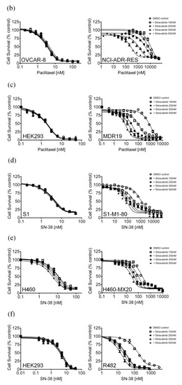 - Tiwari, A.K.; Sodani, K.; Dai, C.L.; Abuznait, A.H.; Singh, S.; Xiao, Z.J.; Patel, A.; Talele, T.T.; Fu, L.; Kaddoumi, A.; et al. Nilotinib potentiates anticancer drug sensitivity in murine ABCB1-, ABCG2-, and ABCC10-multidrug resistance xenograft models. Cancer Lett. 2013, 328, 307–317. [Google Scholar] [CrossRef] [PubMed]