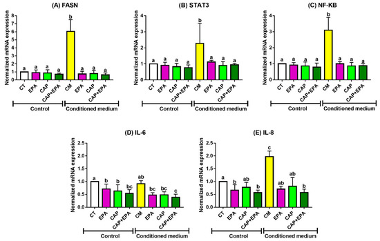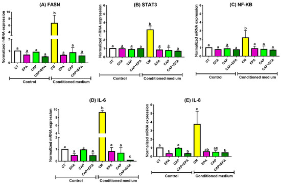 2.1. Effect of Captopril and EPA on Markers of Fatty Acid Synthesis and Inflammation in BC Cells and Role of Human Adipocyte-Conditioned Media (CM)