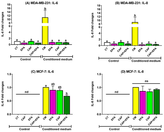 - Freund, A.; Jolivel, V.; Durand, S.; Kersual, N.; Chalbos, D.; Chavey, C.; Vignon, F.; Lazennec, G. Mechanisms underlying differential expression of interleukin-8 in breast cancer cells. Oncogene 2004, 23, 6105–6114. [Google Scholar] [CrossRef]