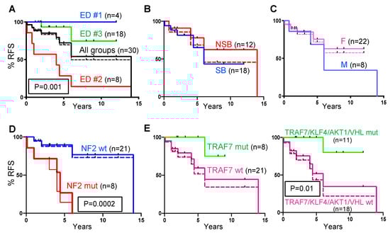 2.3. Recurrence-Free Survival (RFS) Correlates with ED Groups and Mutation Profiles.
