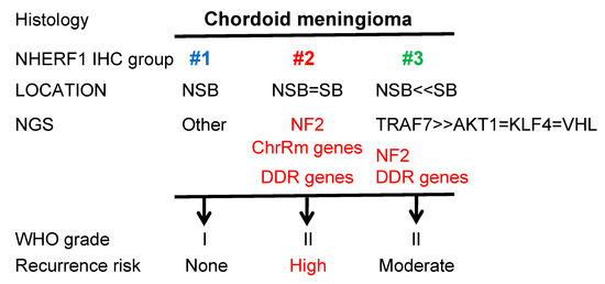 Georgescu, M.-M.; Nanda, A.; Li, Y.; Mobley, B.C.; Faust, P.L.; Raisanen, J.M.; Olar, A. Mutation Status and Epithelial Differentiation Stratify Recurrence Risk in Chordoid Meningioma—A Multicenter Study with High Prognostic Relevance. Cancers 2020, 12, 225. https://doi.org/10.3390/cancers12010225