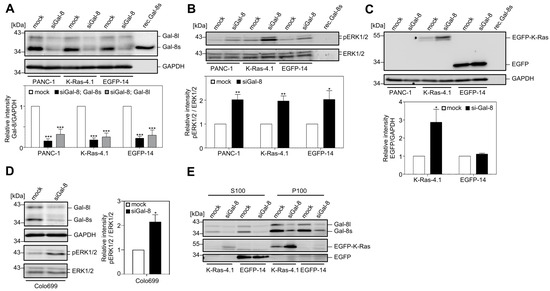 2.2. Downregulation of Galectin-8 Affects K-Ras and ERK1/2
