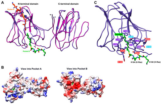 - Zimmermann, G.; Papke, B.; Ismail, S.; Vartak, N.; Chandra, A.; Hoffmann, M.; Hahn, S.A.; Triola, G.; Wittinghofer, A.; Bastiaens, P.I.; et al. Small molecule inhibition of the KRAS-PDEdelta interaction impairs oncogenic KRAS signalling. Nature 2013, 497, 638–642. [Google Scholar] [CrossRef] [PubMed]