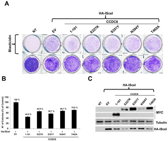 2.2. CCDC6 Lung-Mutants Reduce the DNA Repair Efficiency by Affecting the Homologous Recombination Process