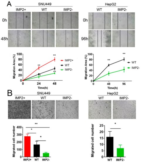 2.3. Overexpression of p62/IMP2 Promotes Cell Migration in HCC