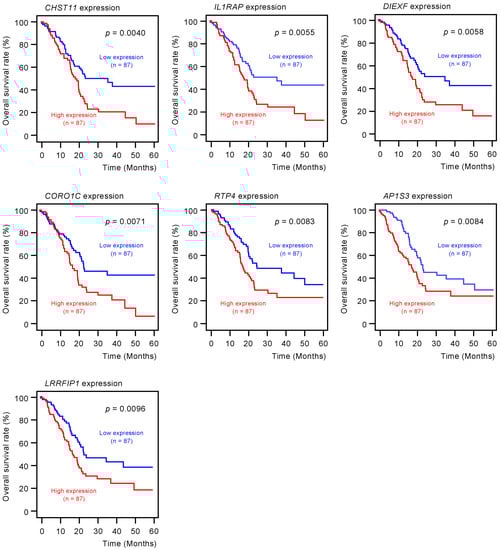 The expression levels of these proteins were verified by “The Human Protein Atlas” database (https://www.proteinatlas.org/). The results of immunostaining for these proteins are summarized in Table S3.