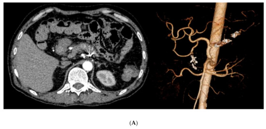 - Kitagawa, T.; Iriyama, K.; Azuma, T.; Yamakado, K. Nonoperative treatment for a ruptured pseudoaneurysm of the celiac trunk: Report of a case. Surg. Today 1997, 27, 1069–1073. [Google Scholar] [CrossRef]