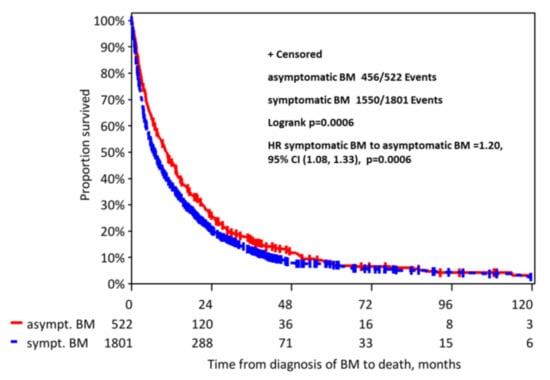 2.2. Overall Survival of Patients with Asymptomatic vs. Symptomatic BMs