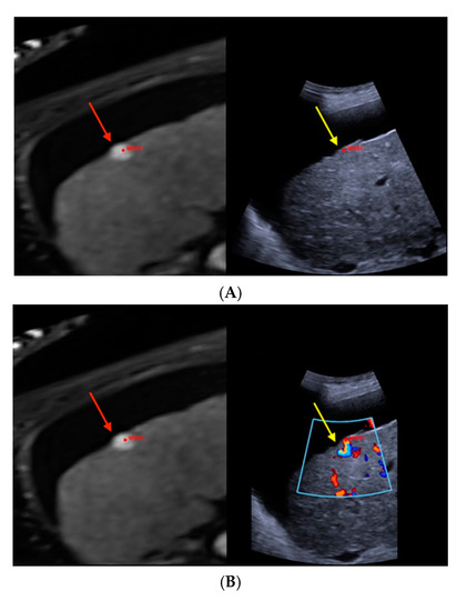 - Dong, Y.; Wang, W.P.; Mao, F.; Ji, Z.B.; Huang, B.J. Application of imaging fusion combining contrast-enhanced ultrasound and magnetic resonance imaging in detection of hepatic cellular carcinomas undetectable by conventional ultrasound. J. Gastroenterol Hepatol. 2016, 31, 822–828. [Google Scholar] [CrossRef]