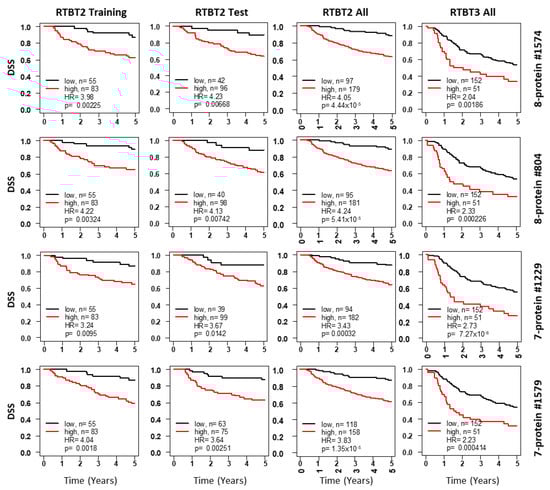 2.4. Multi-Protein Models Have Greater Prognostic Potential for RTBT2 Patients