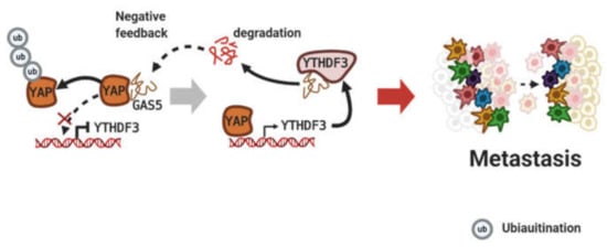 | GAS5 * | YAP | YTHDF3 | Colorectal cancer | [97] |