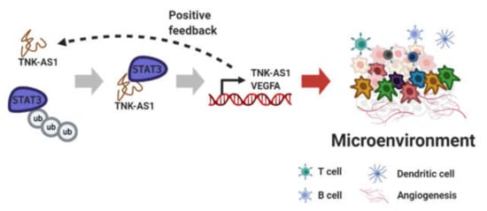 | TNK2-AS1 | STAT3 | VEGFA | Lung cancer | [114] |