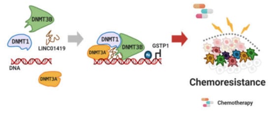 | LINC01419 | DNMT1/DNMT3A/DNMT3B | GSTP1 | Esophageal carcinoma | [125] |