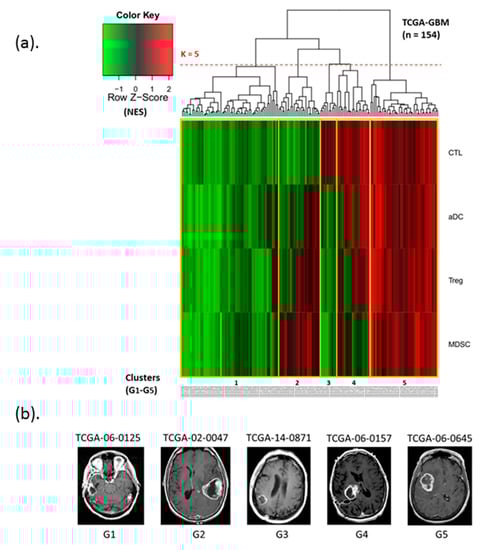 - Cho, H.R.; Jeon, H.; Park, C.K.; Park, S.H.; Choi, S.H. Radiogenomics Profiling for Glioblastoma-related Immune Cells Reveals CD49d Expression Correlation with MRI parameters and Prognosis. Sci. Rep. 2018, 8, 16022. [Google Scholar] [CrossRef] [PubMed]