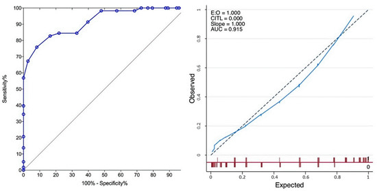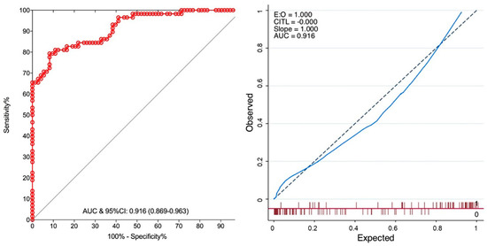 This function showed good discrimination (AUC: 0.92 (95%CI: 0.87–0.96) in receiver operating characteristic (ROC) analysis (Figure 5).
