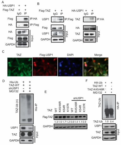 2.2. USP1 Acts as a Post-Translational Modifier of TAZ