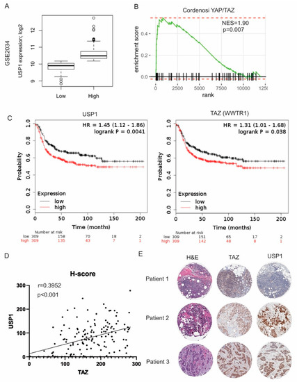 2.5. USP1 and TAZ Expression Are Correlated in TNBC Patients