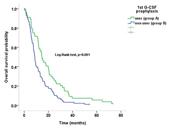 APA StyleJung, J. H., Shin, D. W., Kim, J., Lee, J.-C., & Hwang, J.-H. (2020). Primary Granulocyte Colony-Stimulating Factor Prophylaxis in Metastatic Pancreatic Cancer Patients Treated with FOLFIRINOX as the First-Line Treatment. Cancers, 12(11), 3137. https://doi.org/10.3390/cancers12113137