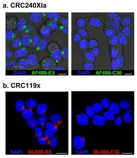 2.3. Confocal Microscopy Verifies E3 Internalization into PDX-Derived Colorectal Cancer Cells