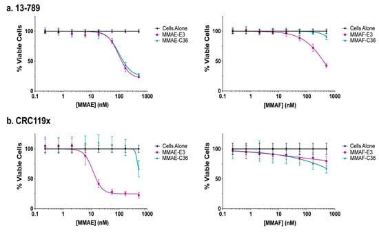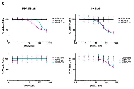 2.4. E3 MMAE and MMAF ApTDCs Inhibit Proliferation across a Range of Human Cancer Types