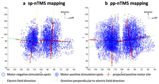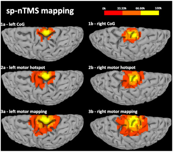- Julkunen, P. Methods for estimating cortical motor representation size and location in navigated transcranial magnetic stimulation. J. Neurosci. Methods 2014, 232, 125–133. [Google Scholar] [CrossRef]