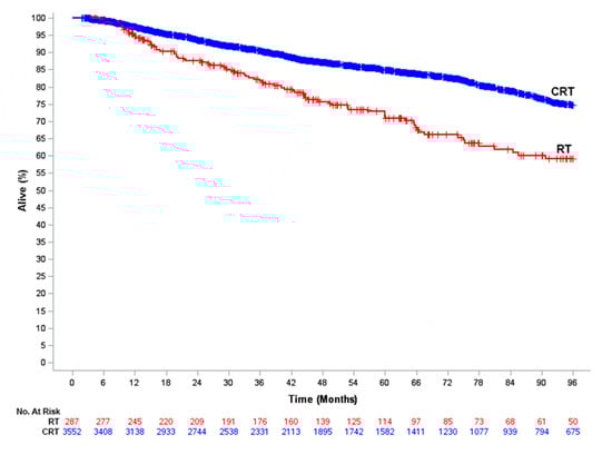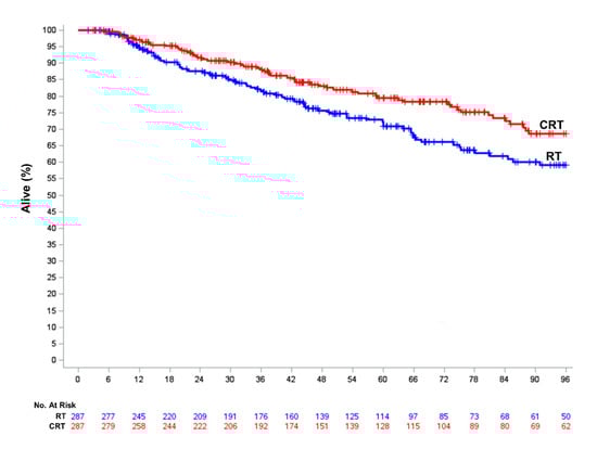 2.2. Factors Associated with RT Alone versus CRT