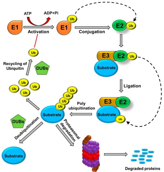 - Amerik, A.Y.; Hochstrasser, M. Mechanism and function of deubiquitinating enzymes. Biochim. Biophys. Acta 2004, 1695, 189–207. [Google Scholar] [CrossRef]