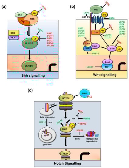 | Notch | Ovarian | EIF3f USP9X USP12 CYLD USP28 | Cell–cell communication |