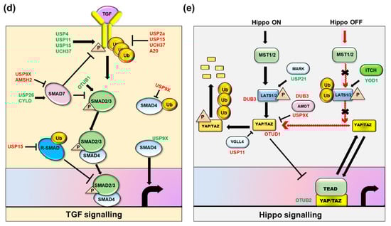 | TGF/BMP | Breast | OTUB1 USP9X | Embryonal development, cellular differentiation, hormone secretion, immune function |