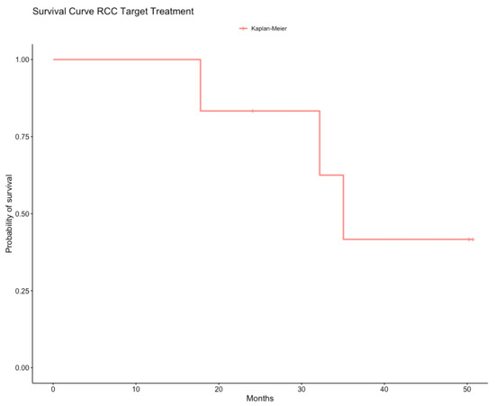 Kaplan-Meier estimates of overall survival of renal cell cancer in patients treated with target treatment (anti-angiogenic and immunotherapy). RCC, renal cell cancer.