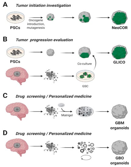 - Azzarelli, R. Organoid Models of Glioblastoma to Study Brain Tumor Stem Cells. Front. Cell Dev. Biol. 2020, 8, 220. [Google Scholar] [CrossRef]