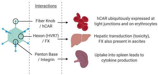 - Waddington, S.N.; McVey, J.H.; Bhella, D.; Parker, A.L.; Barker, K.; Atoda, H.; Pink, R.; Buckley, S.M.K.; Greig, J.A.; Denby, L.; et al. Adenovirus Serotype 5 Hexon Mediates Liver Gene Transfer. Cell 2008, 132, 397–409. [Google Scholar] [CrossRef]