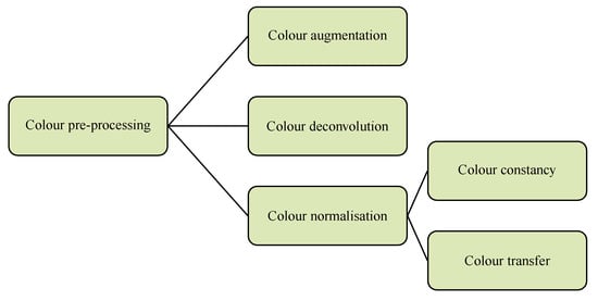 It is convenient to classify color pre-processing methods for histological images into three categories: color augmentation, color deconvolution and color normalization (Figure 2).