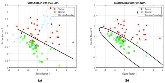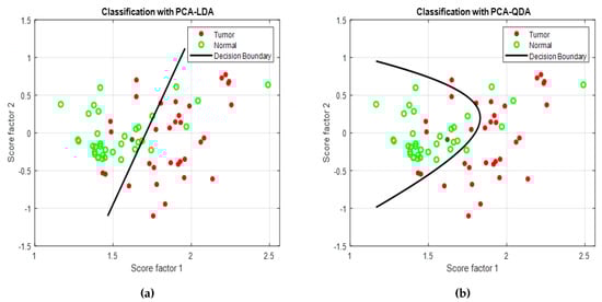 - Siqueira, L.F.; Júnior, R.F.A.; de Araújo, A.A.; Morais, C.L.; Lima, K.M. LDA vs. QDA for FT-MIR prostate cancer tissue classification. Chemom. Intell. Lab. Syst. 2017, 162, 123–129. [Google Scholar] [CrossRef]