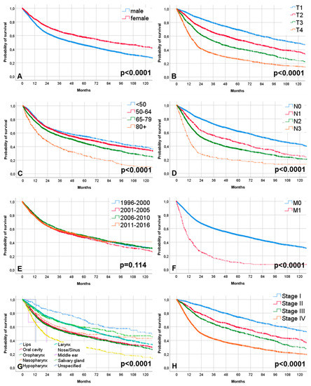 - Gatta, G.; Botta, L.; Huerta, J.M.; Anderson, L.A.; Pierannunzio, D.; Licitra, L.; Hackl, M.; Zielonke, N.; Oberaigner, W.; Van Eycken, E.; et al. Prognoses and improvement for head and neck cancers diagnosed in Europe in early 2000s: The EUROCARE-5 population-based study. Eur. J. Cancer 2015, 51, 2130–2143. [Google Scholar] [CrossRef]