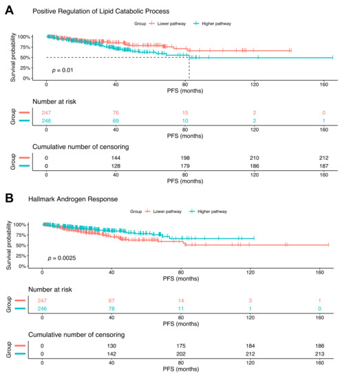 2.6. Increased Lipid Catabolism and Decreased Androgen Response Is Associated with Poorer Progression-Free Survival