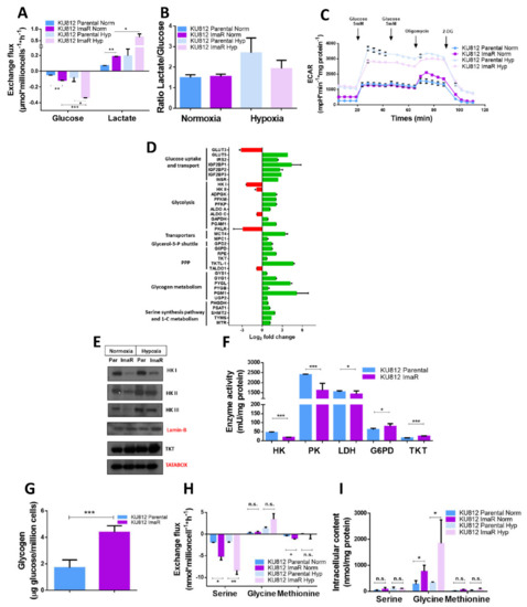 2.2. Development of Resistance to Imatinib Increased Glycolysis and Rewired Glucose to Pentose Phosphate Pathway, Glycogen Synthesis, and Serine-Glycine-One-Carbon Metabolism