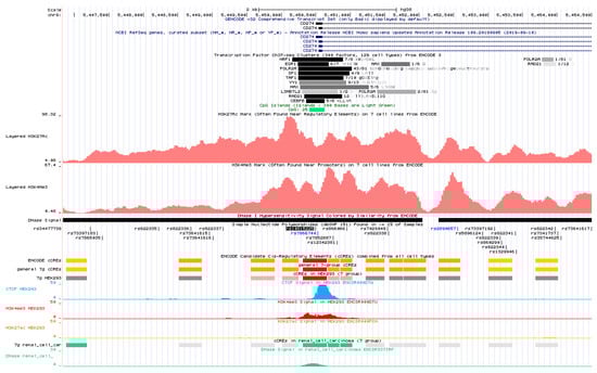 - Lee, C.M.; Barber, G.P.; Casper, J.; Clawson, H.; Diekhans, M.; Gonzalez, J.N.; Hinrichs, A.S.; Lee, B.T.; Nassar, L.R.; Powell, C.C.; et al. UCSC Genome Browser enters 20th year. Nucleic Acids Res. 2020, 48, D756–D761. [Google Scholar] [CrossRef] [PubMed]