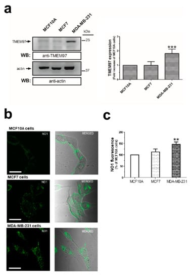2.1. σ2R/TMEM97 Is Overexpressed in Breast Cancer Cell Lines