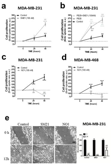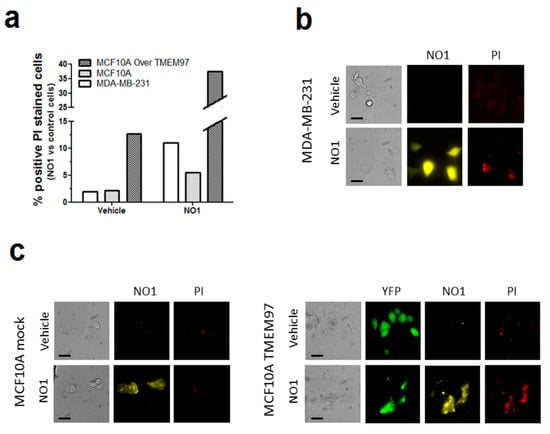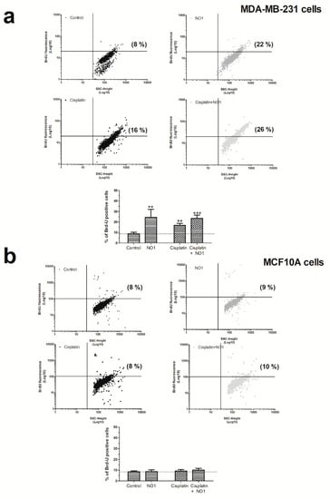 2.3. NO1 Promotes Cell Death and Apoptosis in MDA-MB-231 Cells