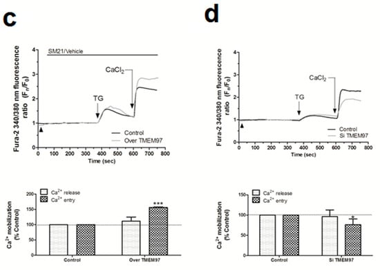 2.5. σ2R/TMEM97 Interacts with STIM1 But Not with Orai1 during SOCE Activation