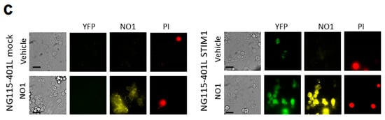 - Zhang, C.; Thomas, D.W. Stromal Interaction Molecule 1 rescues store-operated calcium entry and protects NG115-401L cells against cell death induced by endoplasmic reticulum and mitochondrial oxidative stress. Neurochem. Int. 2016, 97, 137–145. [Google Scholar] [CrossRef]