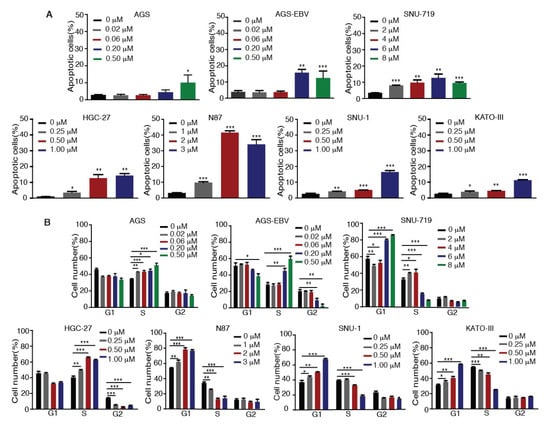 2.2. Tenovin-6 Induces Apoptosis and Cell-Cycle Arrest of GC Cells