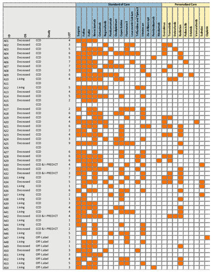 Treatments received by the American patients (A01–A54) in 2008–2017.