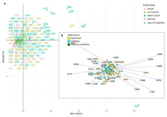 To test for potential differences in the mutational landscapes of American vs. German patients, three different methods were used: (i) a mutational classification according to Schell et al. [4] based on APC, TP53, and KRAS mutations; (ii) principal component analysis; and (iii) phylogenetic network analysis.
