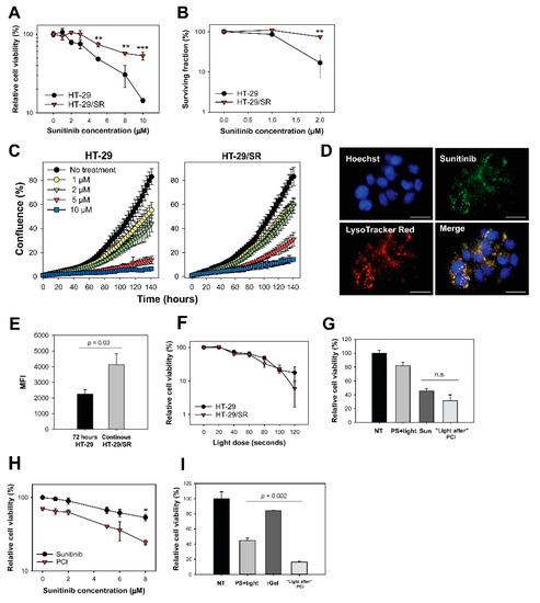 2.6. Photochemical Release of Sequestered Sunitinib Does Not Abolish Sunitinib Resistance in HT-29/SR