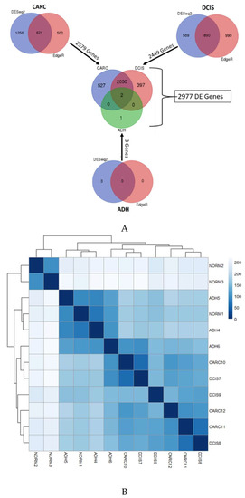 - Robinson, M.D.; McCarthy, D.J.; Smyth, G.K. EdgeR: A Bioconductor Package for Differential Expression Analysis of Digital Gene Expression Data. Bioinformatics 2010, 26, 139–140. [Google Scholar] [CrossRef]