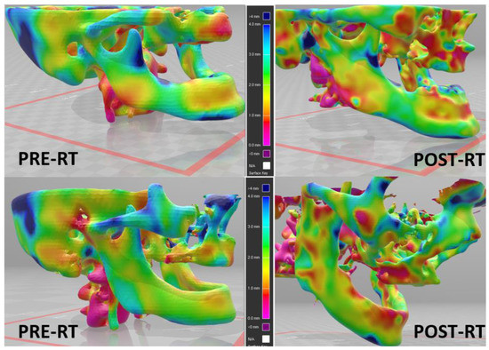 Several of the above-noted rodent studies utilized primarily histologic stains to demonstrate changes in osteoclasts, as well as trabecular number, density, and cortical thickness. Micro-CT also improves upon the evaluation of trabecular volume/number and cortical thickness, but is limited to small regions of interest. A novel three-dimensional (3D) cortical mapping algorithm was developed that could easily be scalable to larger CT scans, multiple bones simultaneously, and provide both quantitative and qualitative information on RT-induced bone changes [4,61,62].