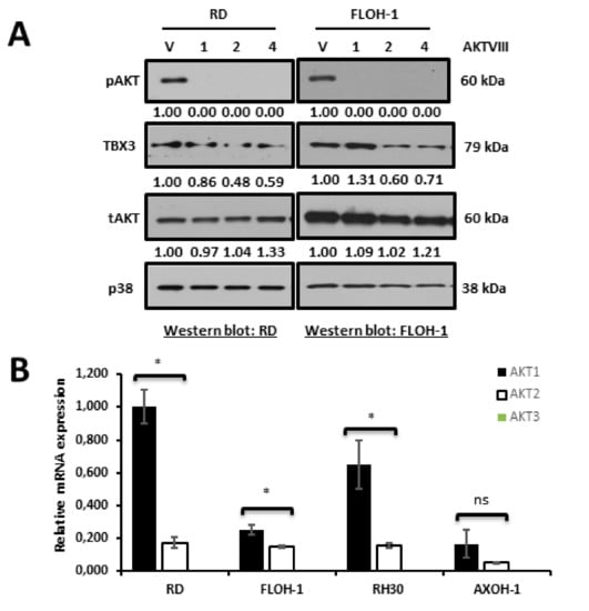 2.7. AKT1 Is the Predominant AKT Isoform in ERMS and Post-Translationally Upregulates TBX3