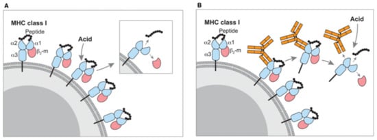 | It involves fewer purification steps and no detergents | It is been used for high-throughput sequencing of the MHC I-associated peptide repertoire because it is assumed that eluted peptides contain not only MHC I-associated peptides, but also “contaminant” peptides | [45] |